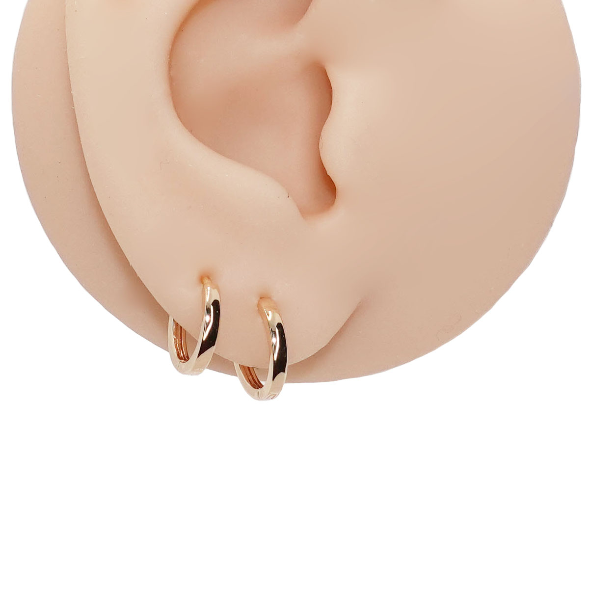Mini par de argolas Naked conta com fecho em click, produzidas em metal com banho dourado de 9 milésimo, que oferece uma cor mais viva e brilhante às peças além de uma camada de proteção.