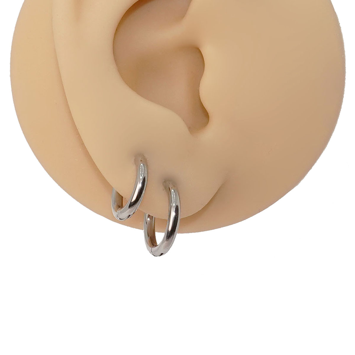 O par de argolas liso é produzido em Aço Cirúrgico, um material que não oxida. Conta com fecho em Click, o que facilita colocar e tirar a peça.