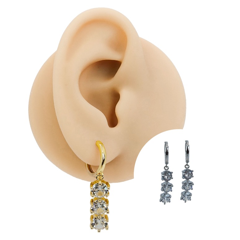 O Par de brincos Triple Zircónia Folheado tem um design perfeito para a mulher forte e confiante que busca deixar seu visual mais ousado e estiloso sem sair da linha formal. Conta com fecho em Clicker, produzidas em metal.Essa joia recebe um banho de verniz cataforético, que proporciona uma camada protetora uniforme e altamente resistente, intensificando o brilho e garantindo maior durabilidade à peça. Suas zircônias são cravejadas. Um brinco da mais alta qualidade!