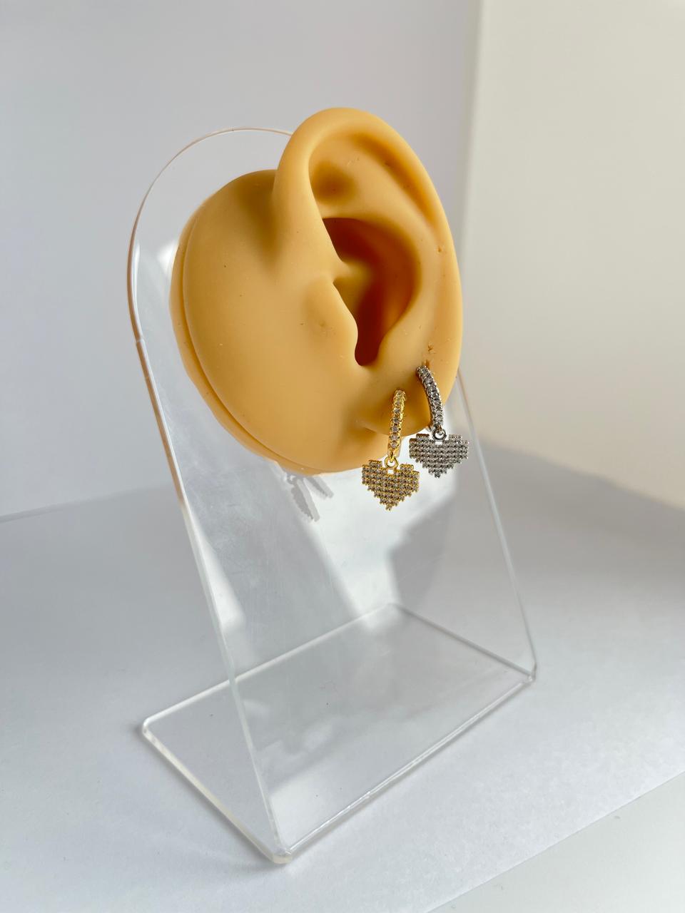 O Par de brincos Coração Cravejado tem um design perfeito para a mulher forte e confiante que busca deixar seu visual mais ousado e estiloso sem sair da linha formal. Seu fecho é cliker o que facilita colocar e tirar a peça. Produzidas em metal, o modelo dourado conta com banho dourado de 3 milésimos e o modelo prateado conta com banho de ródio, que oferece uma cor mais viva e brilhante às peças além de uma camada de proteção. Suas zircônias são cravejadas. Um brinco da mais alta qualidade!