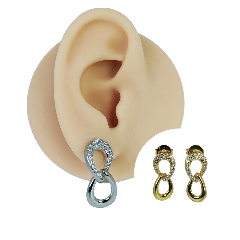 O Par de brincos Infinito Folheado Zircônias tem um design perfeito para a mulher forte e confiante que busca deixar seu visual mais ousado e estiloso sem sair da linha formal. Conta com fecho em tarraxa, produzidas em metal. Essa joia recebe um banho de verniz cataforético, que proporciona uma camada protetora uniforme e altamente resistente, intensificando o brilho e garantindo maior durabilidade à peça. Suas zircônias são cravejadas. Um brinco da mais alta qualidade!