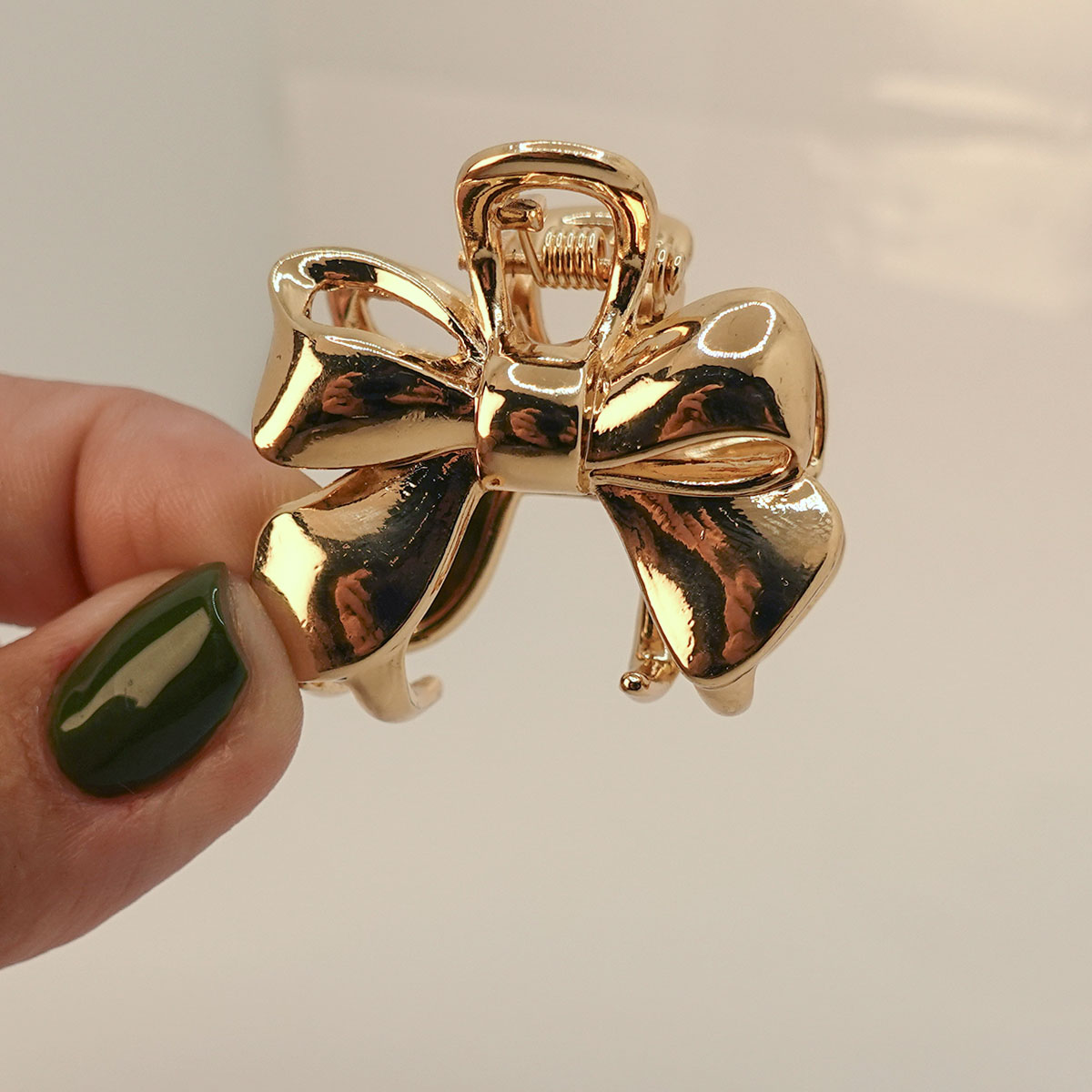 A Mini Presilha Piranha de Cabelo Laço foi pensada para mulher forte e confiante que busca deixar seu visual mais ousado e estiloso sem sair da linha formal. Produzidas em metal, conta com banho dourado de 3 milésimos, possuindo um acabamento impecável. Ela prende bem seu cabelo, pois possui 4 garras e vai ser peça chave na sua produção.