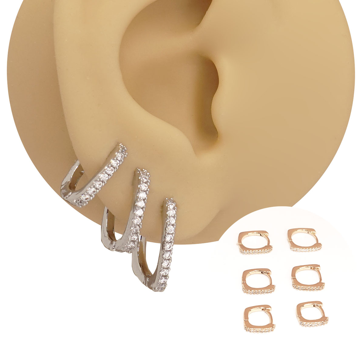Mix Brincos Folheado Argola Formato Quadrado Slim conta com fecho clicker produzidas em metal com banho dourado de 3 milésimos, que oferece uma cor mais viva e brilhante às peças além de uma camada de proteção. O kit vem com três tamanhos de peças para serem usadas tanto juntas como separadas. Conta com aplicação de zircônias