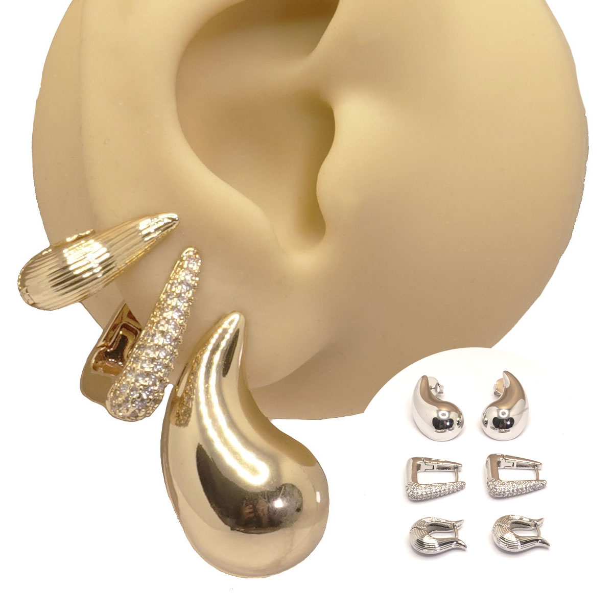 Mix Brincos Folheado Gota e Zircônia conta com itens com fecho em tarraxa e fecho clicker, produzidas em metal com banho dourado de 3 milésimos, que oferece uma cor mais viva e brilhante às peças além de uma camada de proteção. Conta com aplicação de zircônia em uma das peças.