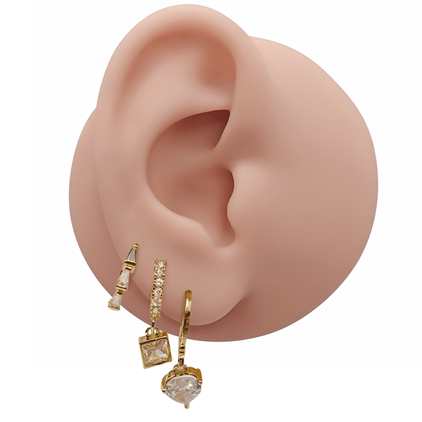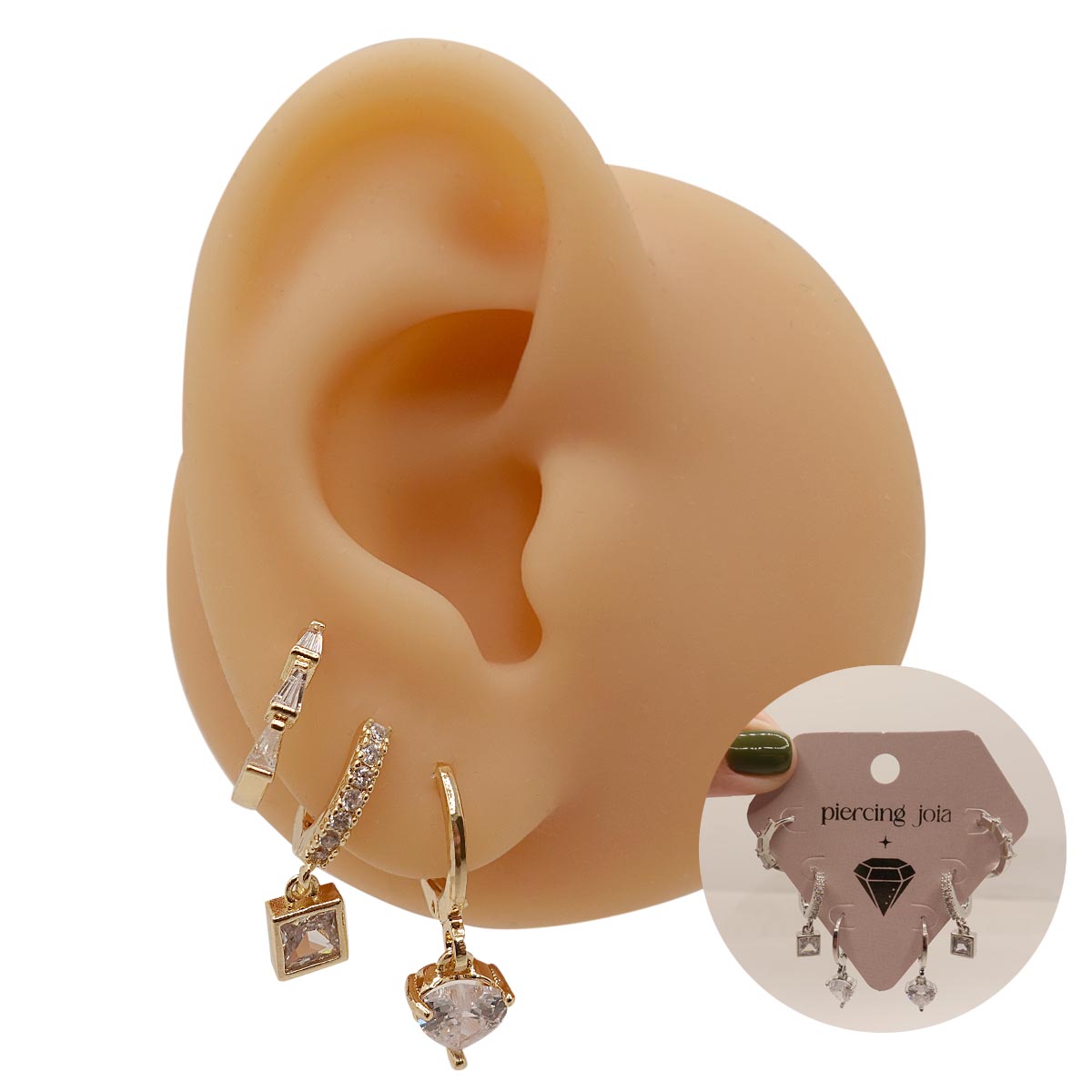 Mix Brincos Folheado Argolas Navete Coração Zircônia produzidos em metal com banho dourado de 3 milésimos, que oferece uma cor mais viva e brilhante às peças além de uma camada de proteção. O kit vem com 3 pares de brincos diferentes para fazer um visagismo bem interessante na sua orelha.