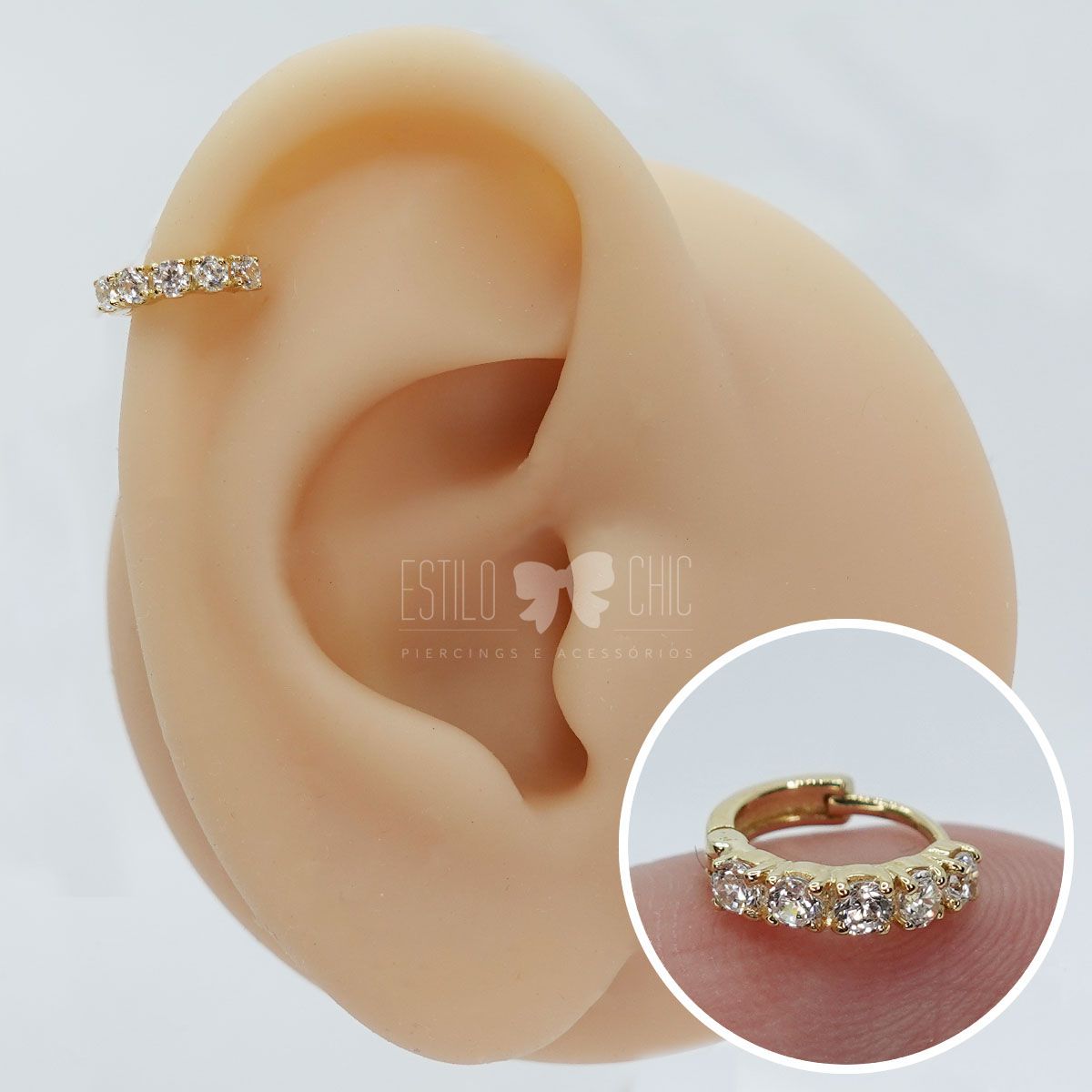 O Piercing Argola Classic é uma argola produzida em Ouro 18K, Um material antiálergico, é cravejada de zircônias. Seu fecho click permite que seja mais facil colocar e tirar a joia