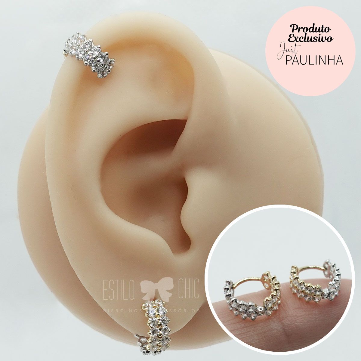 O Piercing Argola Laurel Duo é totalmente diferenciada. É uma argola fabricado em Ouro 18K, um material antialérgico, Com uma metade em ouro branco e a outra metade em ouro amarelo, cravejada de zircônias. Seu fecho click permite que seja mais facil colocar e tirar a joia.