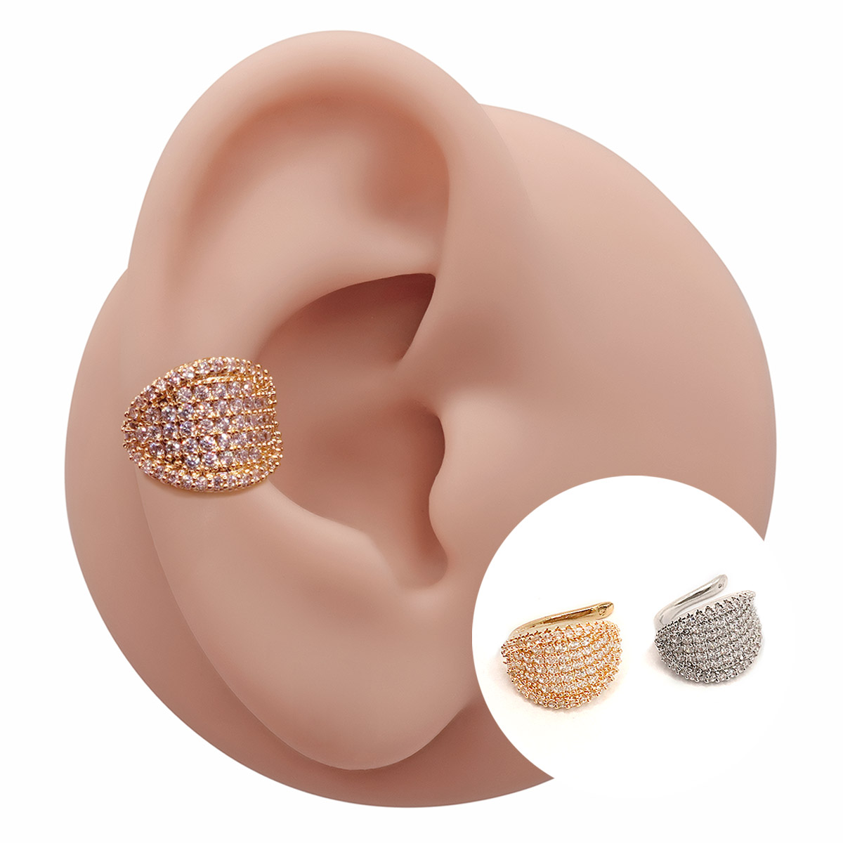 Piercing argola fake Zircônias é produzido em metal com banho de ródio. Possui um formato com Zircônias e pode ser ajustável. Perfeita para ser utilizado na orelha, na região do Conch, sendo de encaixe e sem necessidade de perfuração.