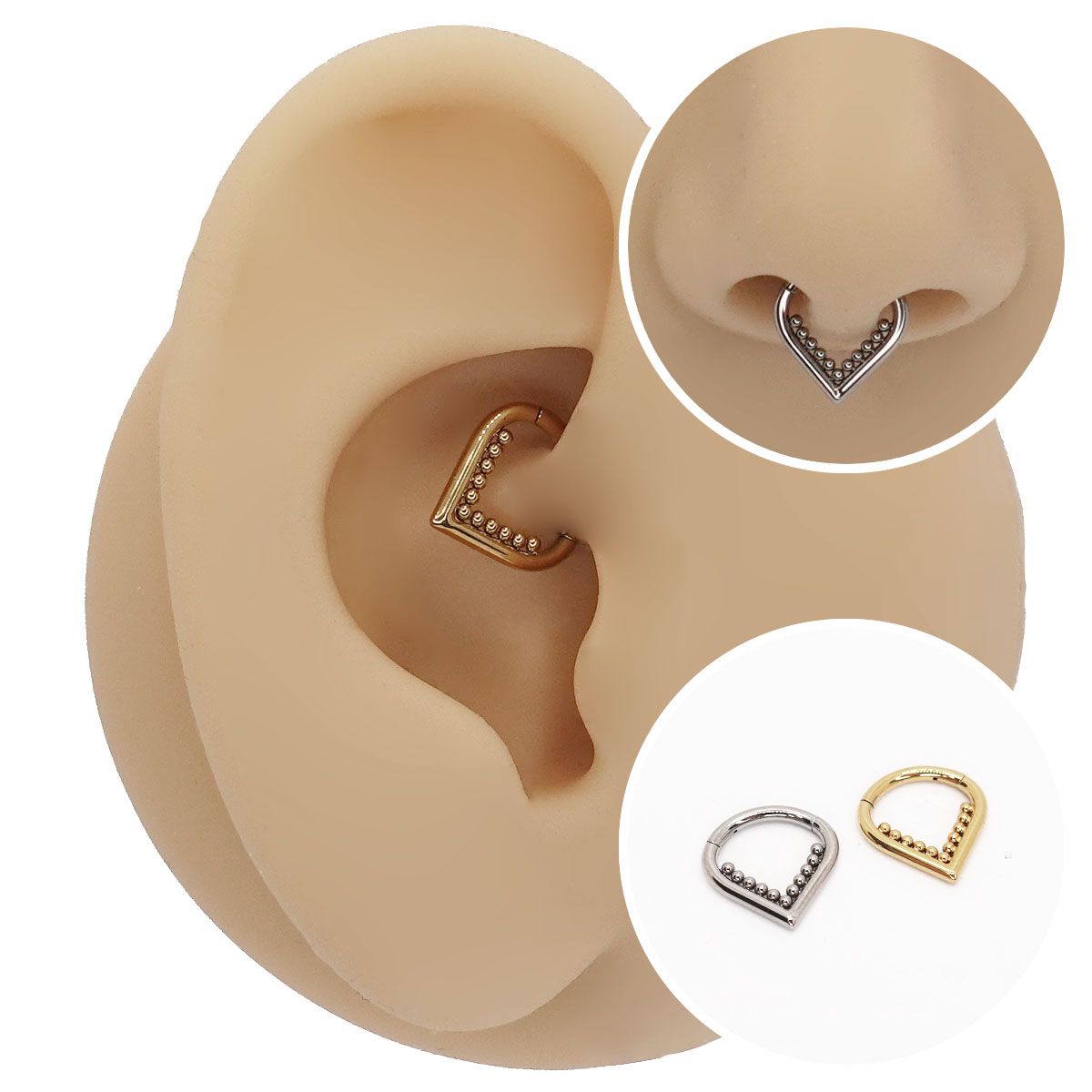 O Piercing Argola Gota Indiano é produzido em Titânio, o material mais biocompatível com o nosso corpo. Conta com aplicação de bolinhas em titânio e o seu fecho é click, o que facilita colocar e tirar a peça. O modelo dourado passa por coloração pelo processo PVD*