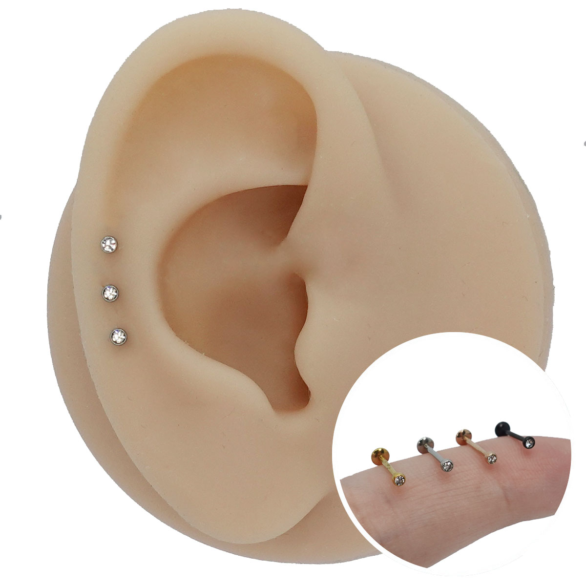 Ideal para: Australianos, Anti-Hélix, Californianos, Conch, Escafa/Flat, Hélix, Lóbulo, Minions e Tragus.