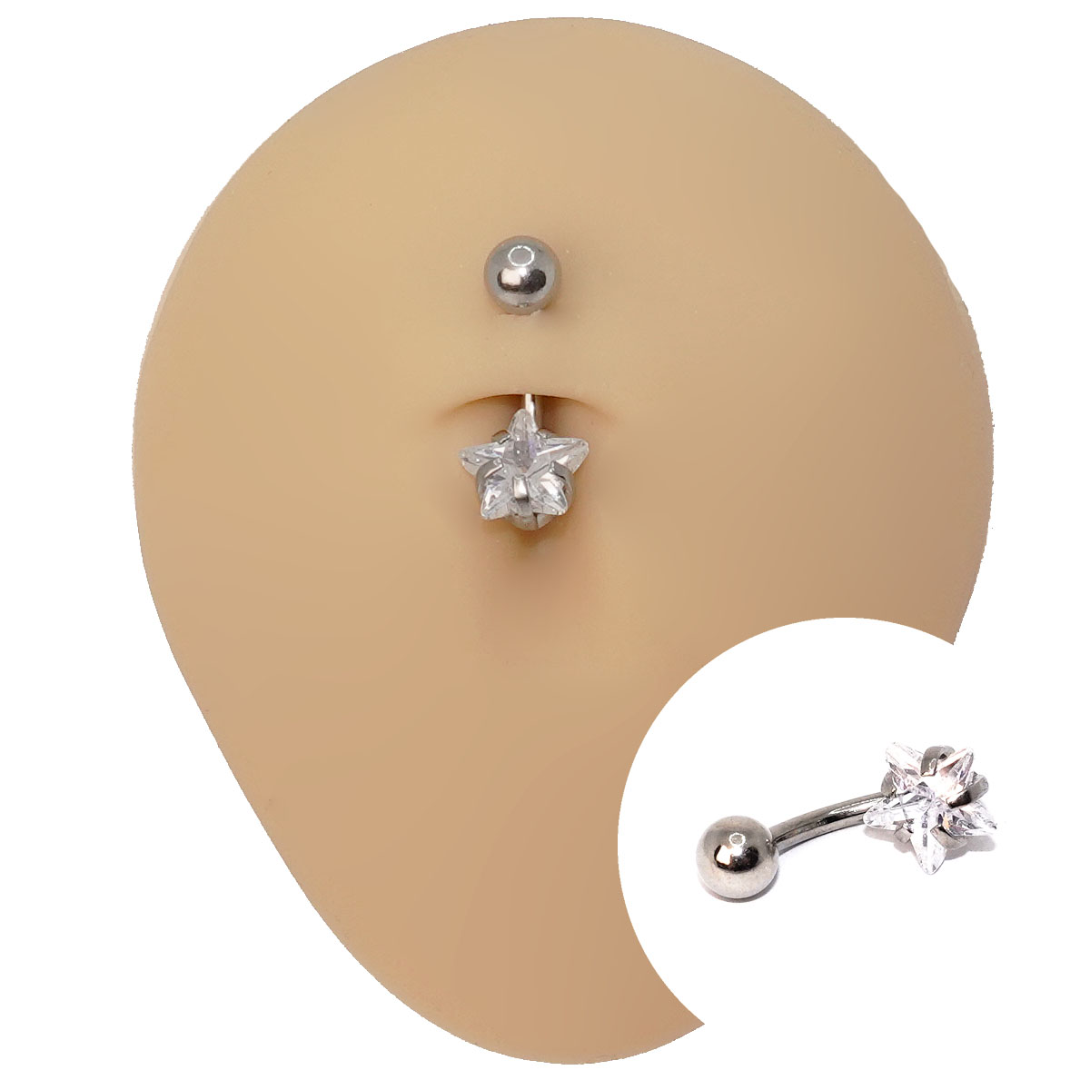 O Piercing Banana Estrela é produzido em Aço Cirúrgico, um material que não oxida. Conta com uma bolinha lisa no inicio e uma estrela cravejada com uma zircônia, seu fecho é com rosca externa.