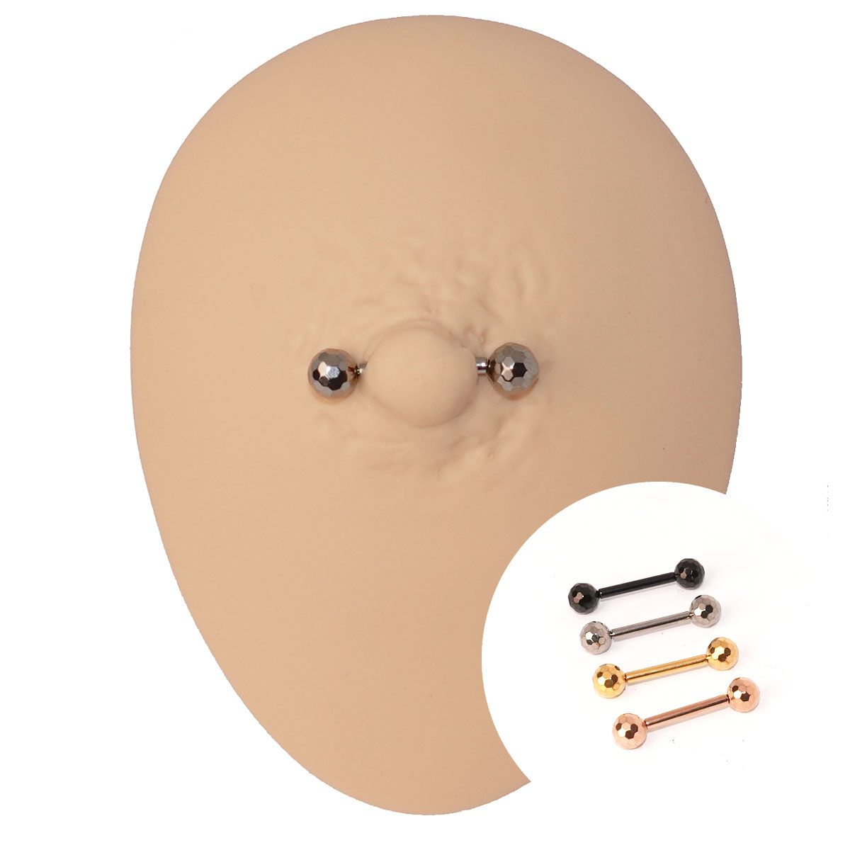 O Piercing Barbell Disco é produzido em Titânio, o material mais biocompatível com o nosso corpo. Conta com bolinha multifacetada nas duas ponteiras e seu fecho é plug, o que facilita colocar e tirar a peça. O modelo dourado, rose e preto passam por coloração pelo processo PVD*
