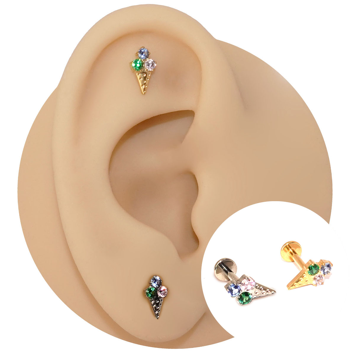 O Piercing Labret Sorvete com Zircônias é uma peça de alta qualidade, fabricada em titânio, um material reconhecido por sua biocompatibilidade e resistência. Ideal para quem busca conforto e durabilidade, este piercing apresenta um design elegante com topo em forma de sorvete adornado por zircônias cravejadas coloridas, garantindo um brilho intenso e sofisticado. O fecho de rosca interna te faz ter uma maior segurança e praticidade no uso diário.
