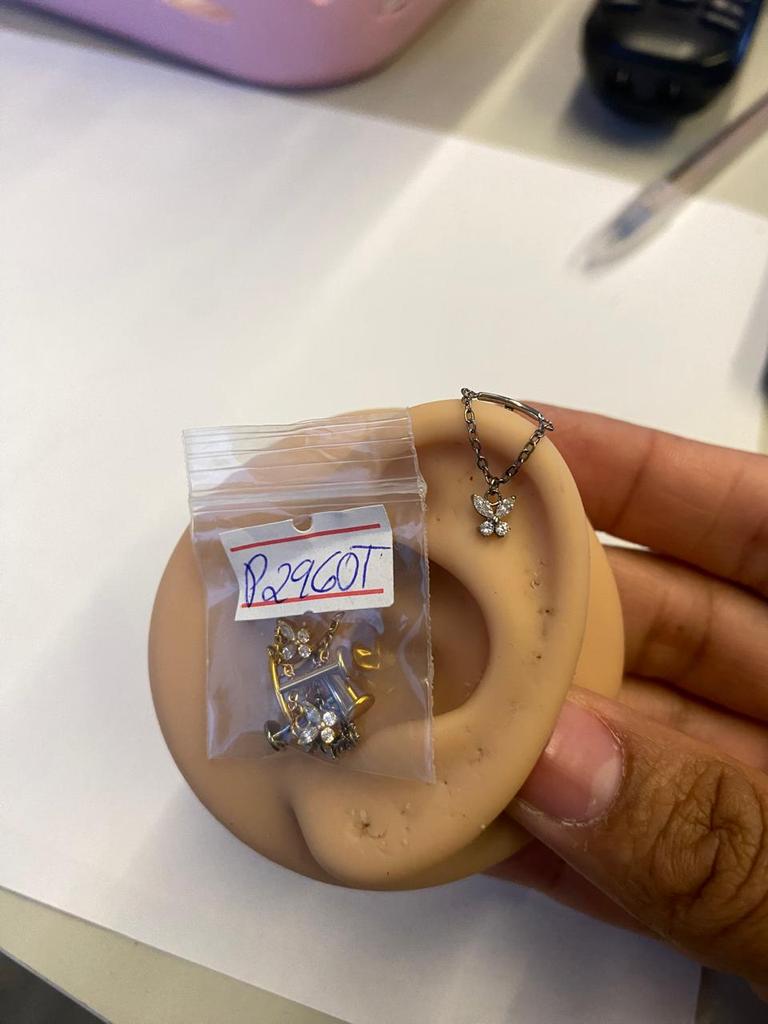 O Piercing Labret Corrente Barra com Pingente Borboleta é produzido em Titânio, o material mais biocompatível com o nosso corpo. Conta com o topo com uma barra lisa, uma corrente unida por um pingente em formato de borboleta. Seu fecho é com rosca interna e o modelo dourado passa por coloração pelo processo PVD*