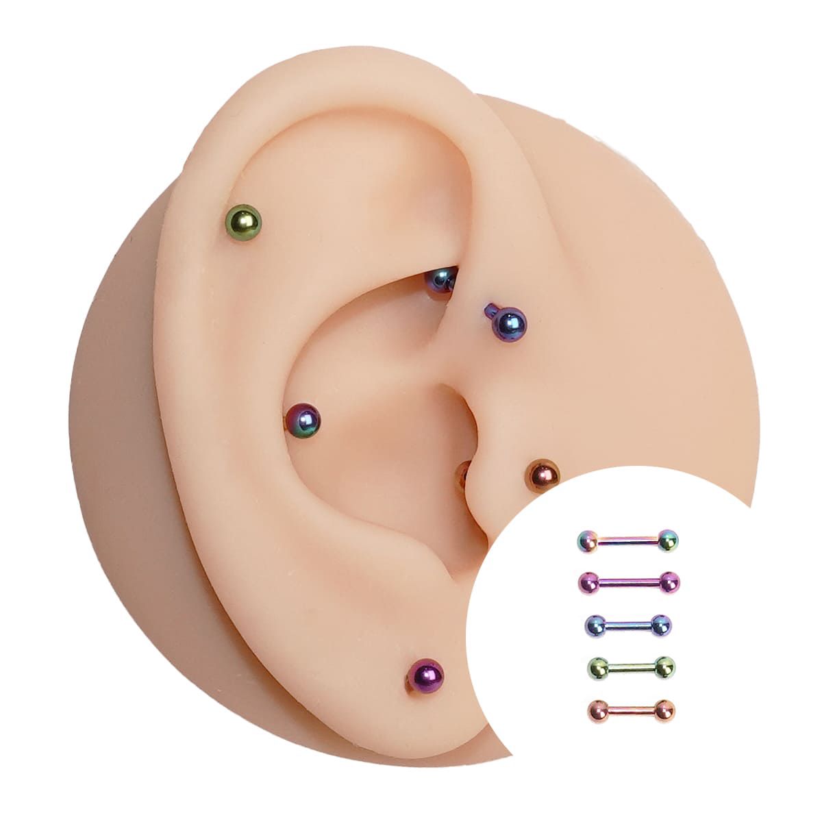 Piercing microbell em aço inoxidável anodizado e bolinhas rosqueáveis.