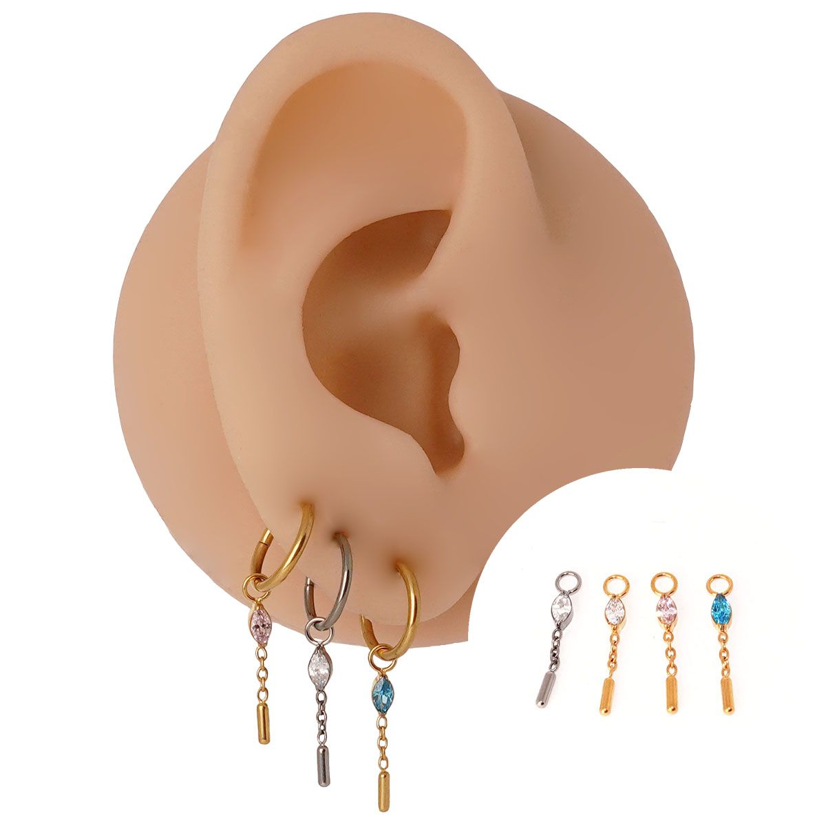 O Pingente Navete Colors é feito em titânio, o material mais biocompatível com o nosso corpo, ele é feito para usar em argolinhas fininhas, com o calibre de até 2mm. O modelo dourado possui processo PVD*