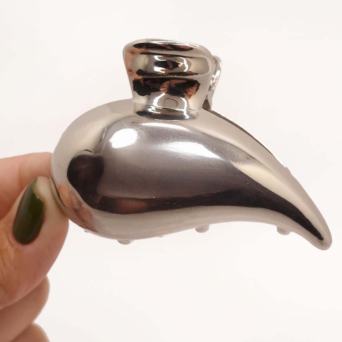 A Presilha Piranha de Cabelo Drop foi pensada para mulher forte e confiante que busca deixar seu visual mais ousado e estiloso sem sair da linha formal. Produzidas em metal, conta com banho dourado de 3 milésimos, possuindo um acabamento impecável. Ela prende bem seu cabelo, pois possui 6 garras e vai ser peça chave na sua produção.
