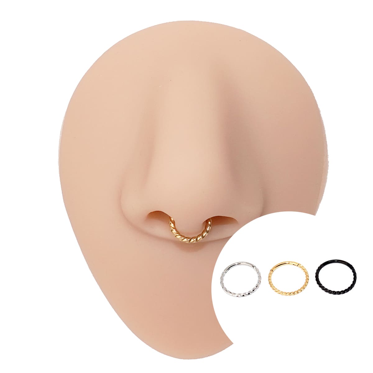 Piercing argola com segmento articulado e fecho click produzido em aço inoxidável anodizado. Possui acabamento texturizado em chevron.