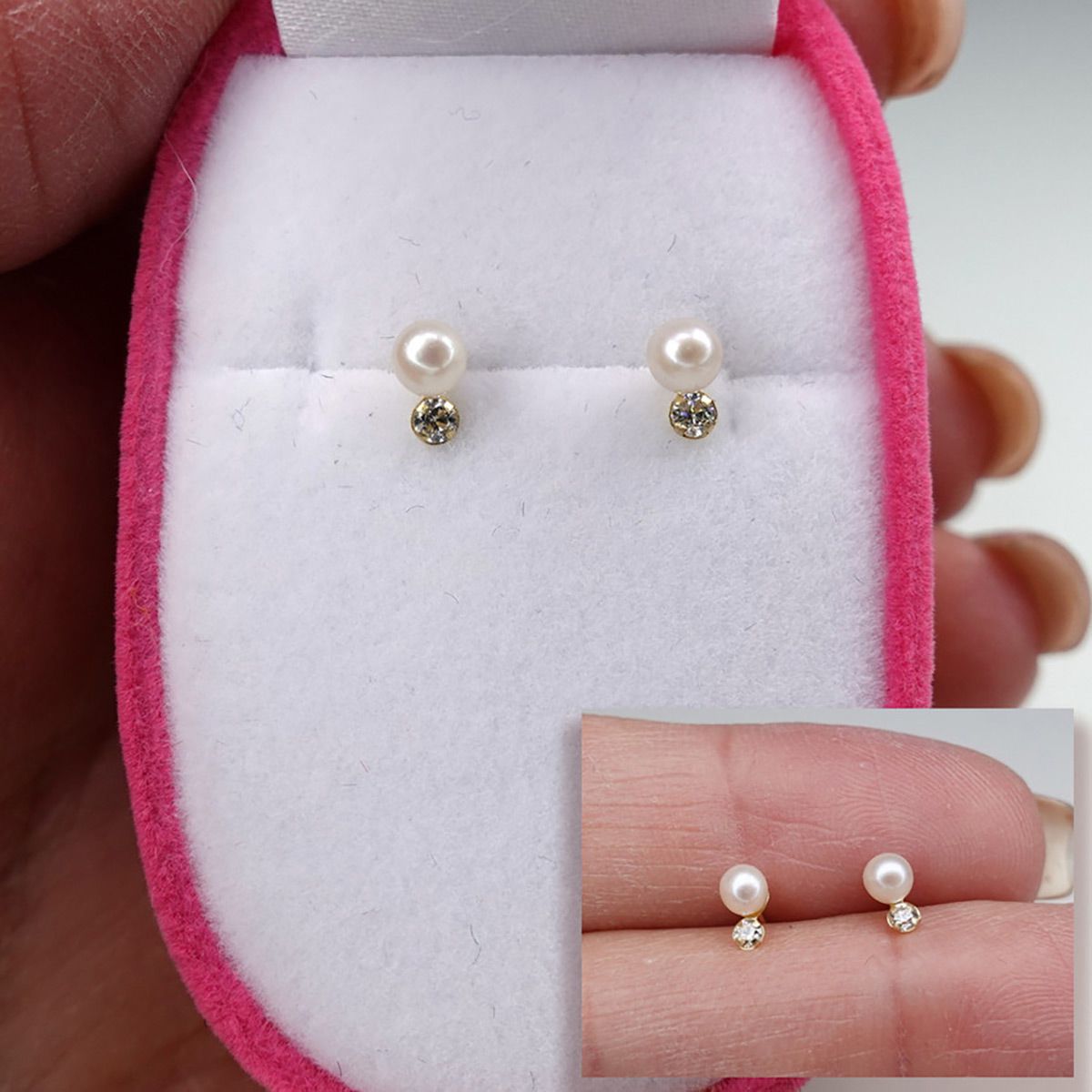 Par de brincos em Ouro 18k com aplicação de mini pérola e cristal de zircônia.