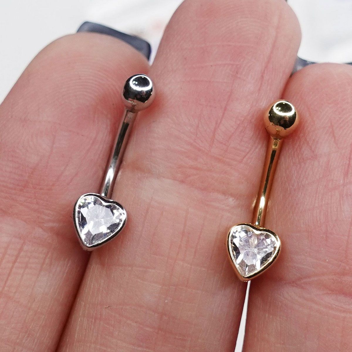 O Piercing Banana Coração é produzido em ouro 18K, um material antialérgico, que conta com aplicação de zircônia e com bolinha rosqueável, com rosca externa.