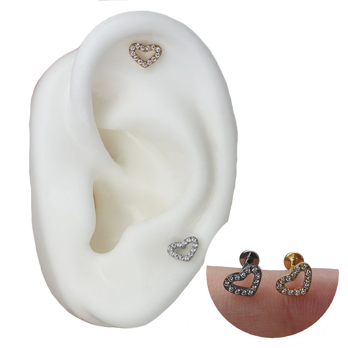 O Piercing Labret coração é feito em Titânio, o material mais biocompatível com o nosso corpo, é uma peça que tem rosca interna. O modelo dourado possui processo PVD*