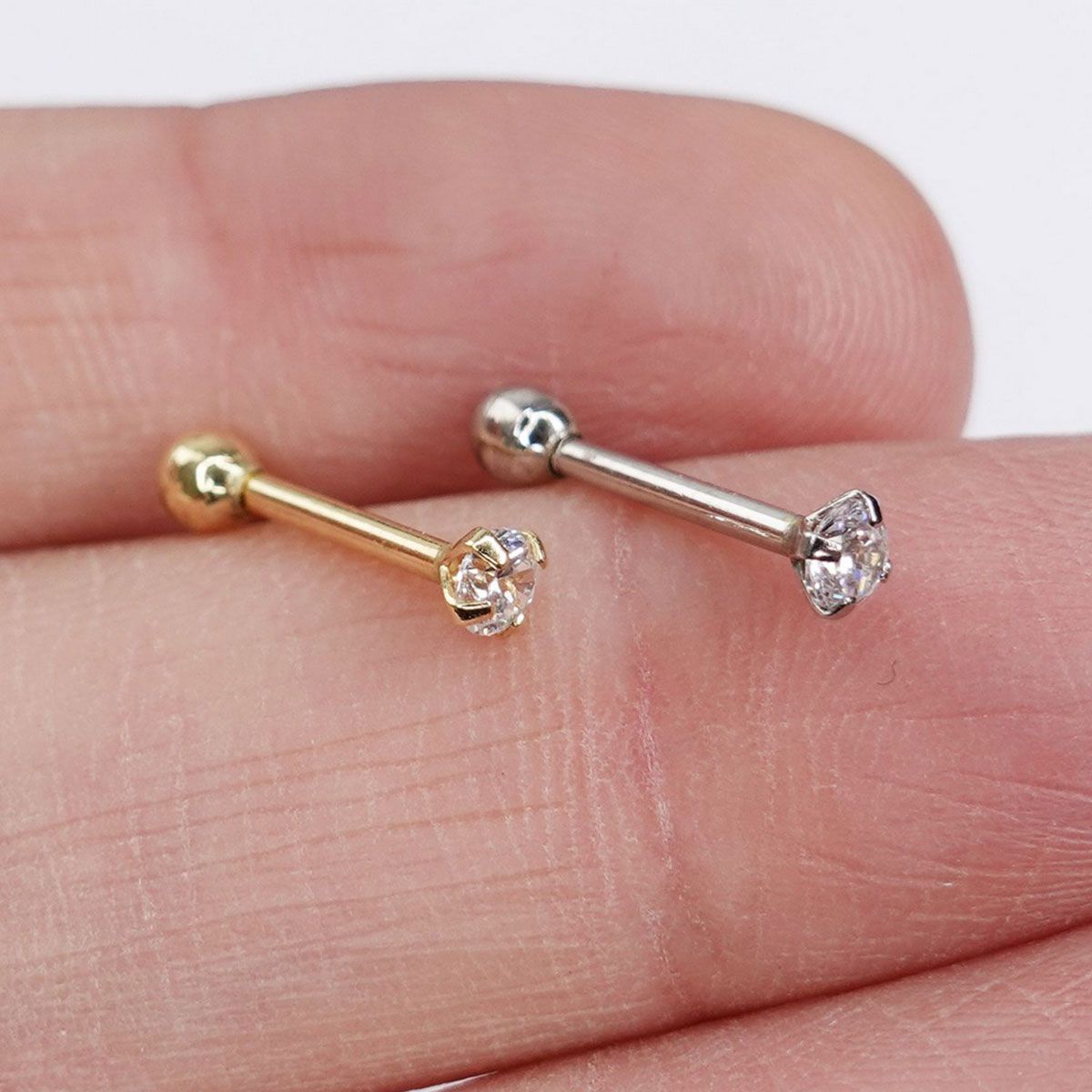 O Piercing Microbell Classic é produzido em Ouro 18k, um material antialérgico, com zircônia cravada e bolinha rosqueável com rosca externas.